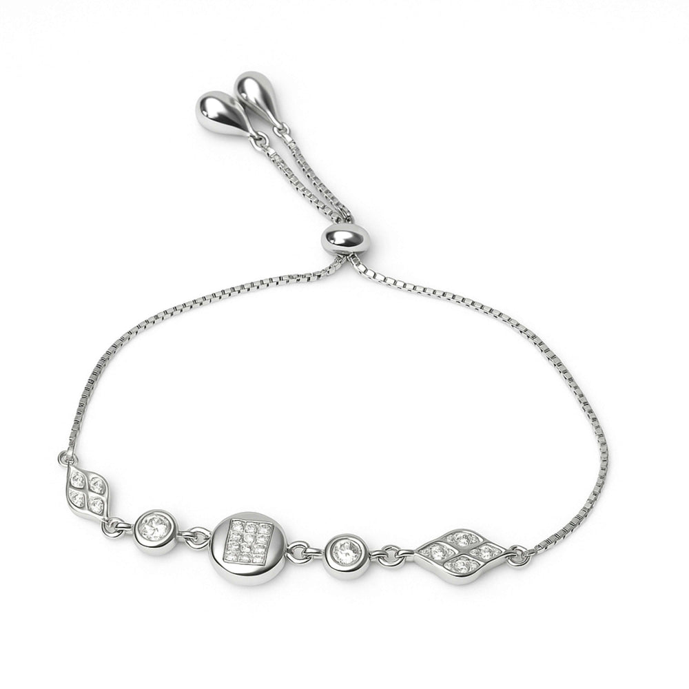 Sterling Silver Adjustable Bracelet with Geometric Stone Elements