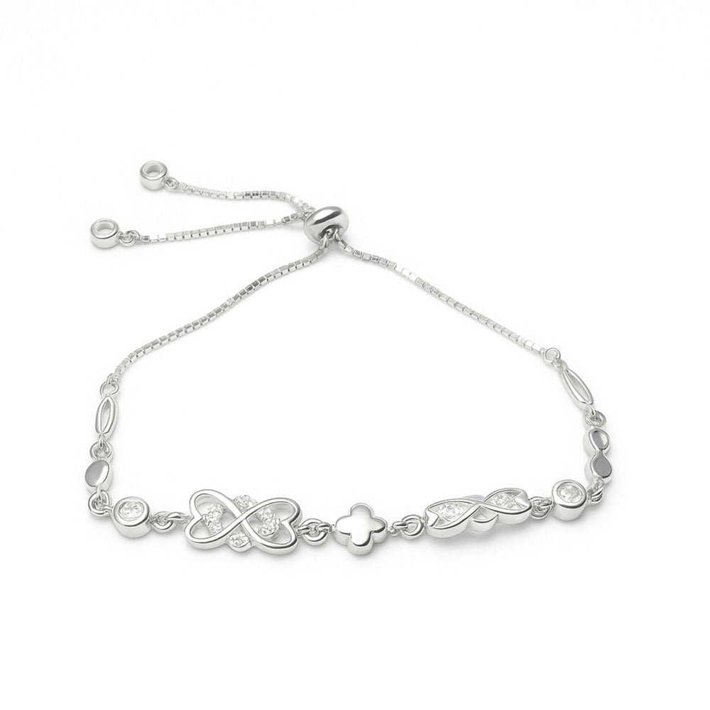 Sterling Silver Adjustable Bracelet with Infinity, Clover, and Stone Links