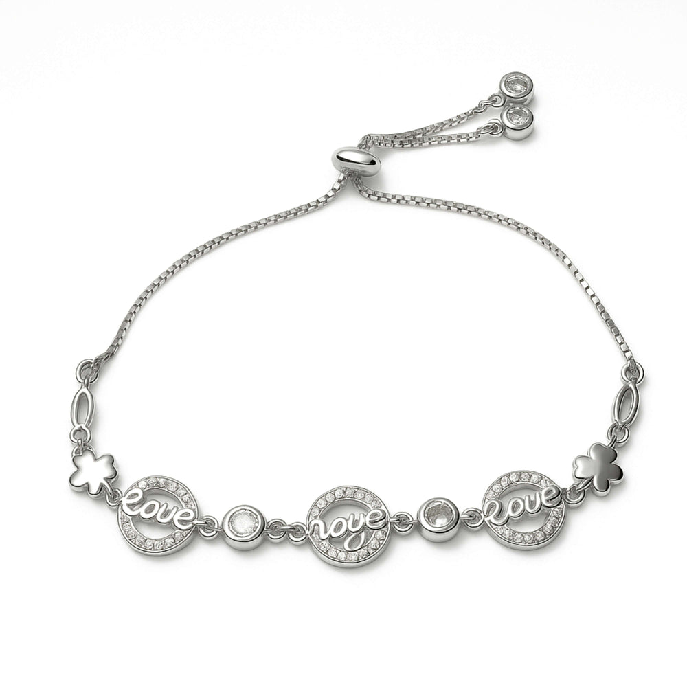 Sterling Silver Adjustable “Love” Bracelet with Round Stone Links
