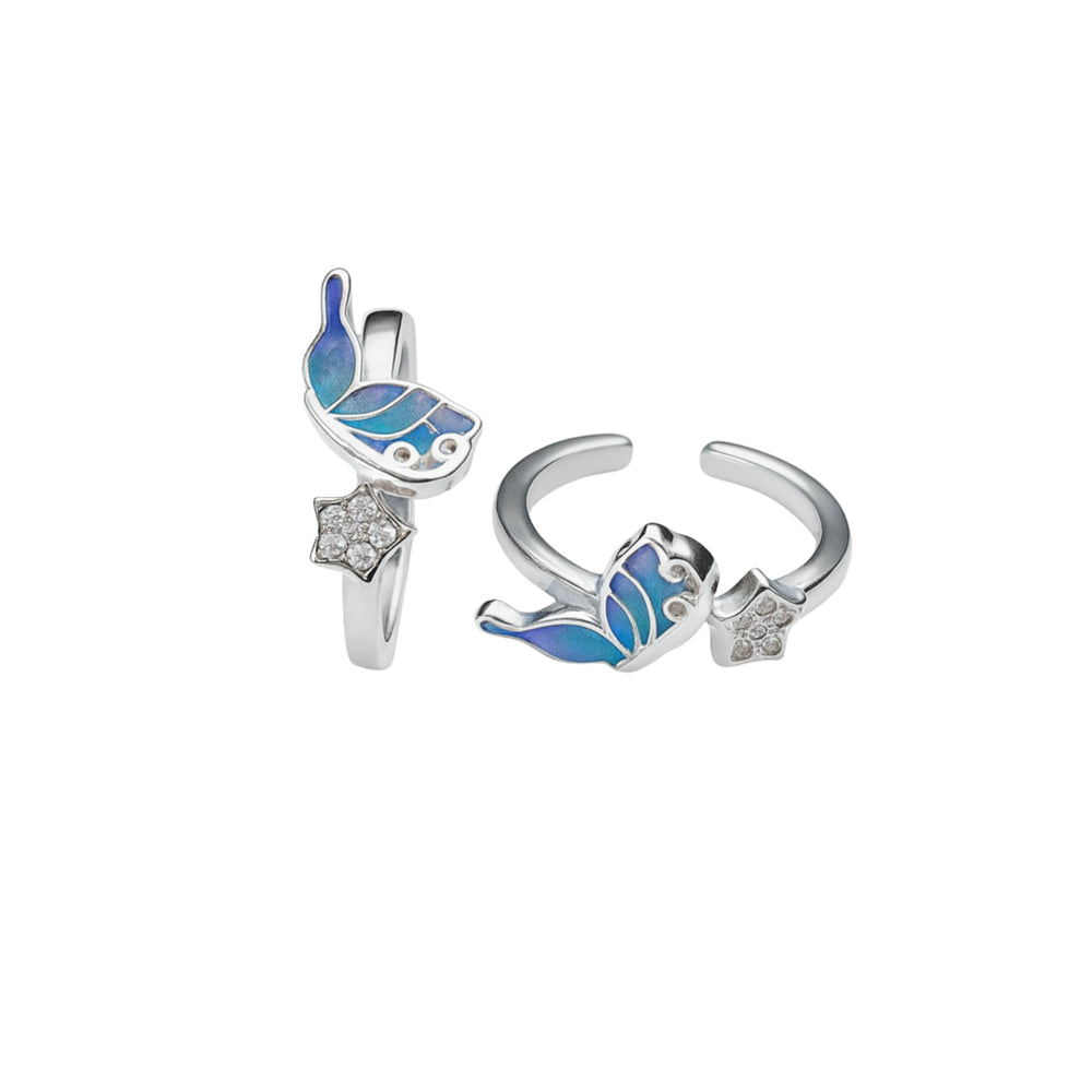 Sterling Silver Adjustable Toe Rings with Enamel Bird Motif