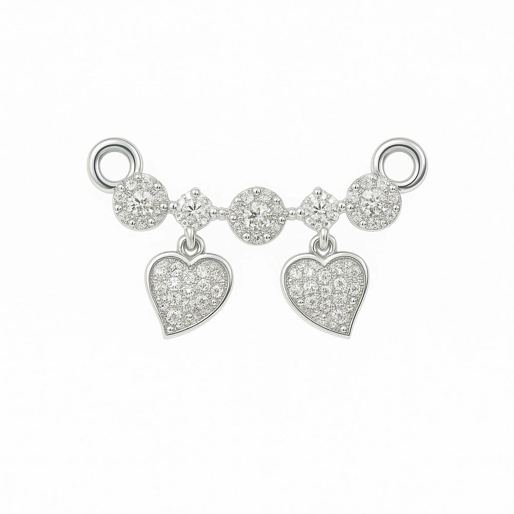 Sterling Silver Double Heart Mangalsutra Pendant with Stone Work