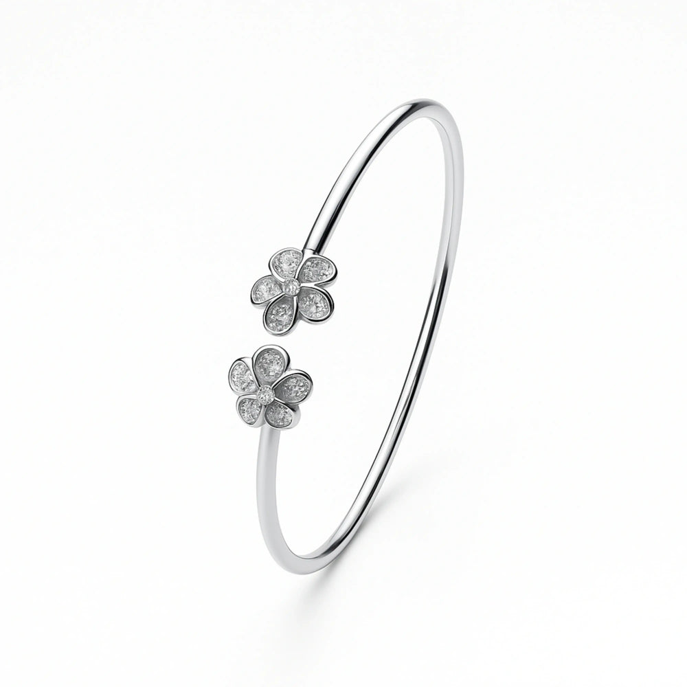 Sterling Silver Floral Open Kada with Dual Flower Design