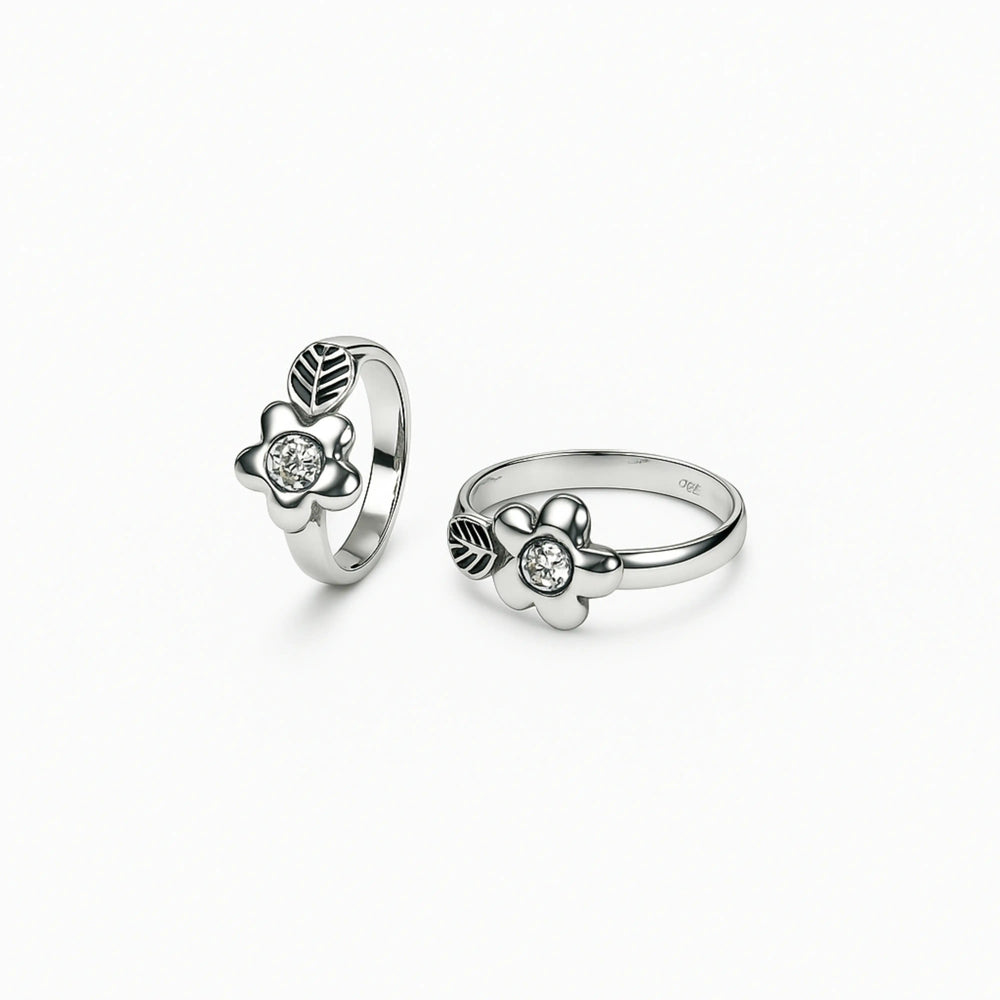 Sterling Silver Flower Toe Ring with Leaf Design