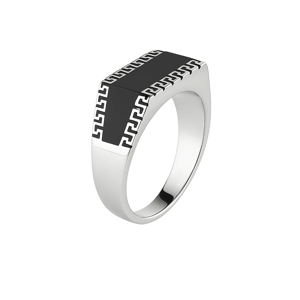 Sterling Silver Greek Key Black Onyx Men’s Ring