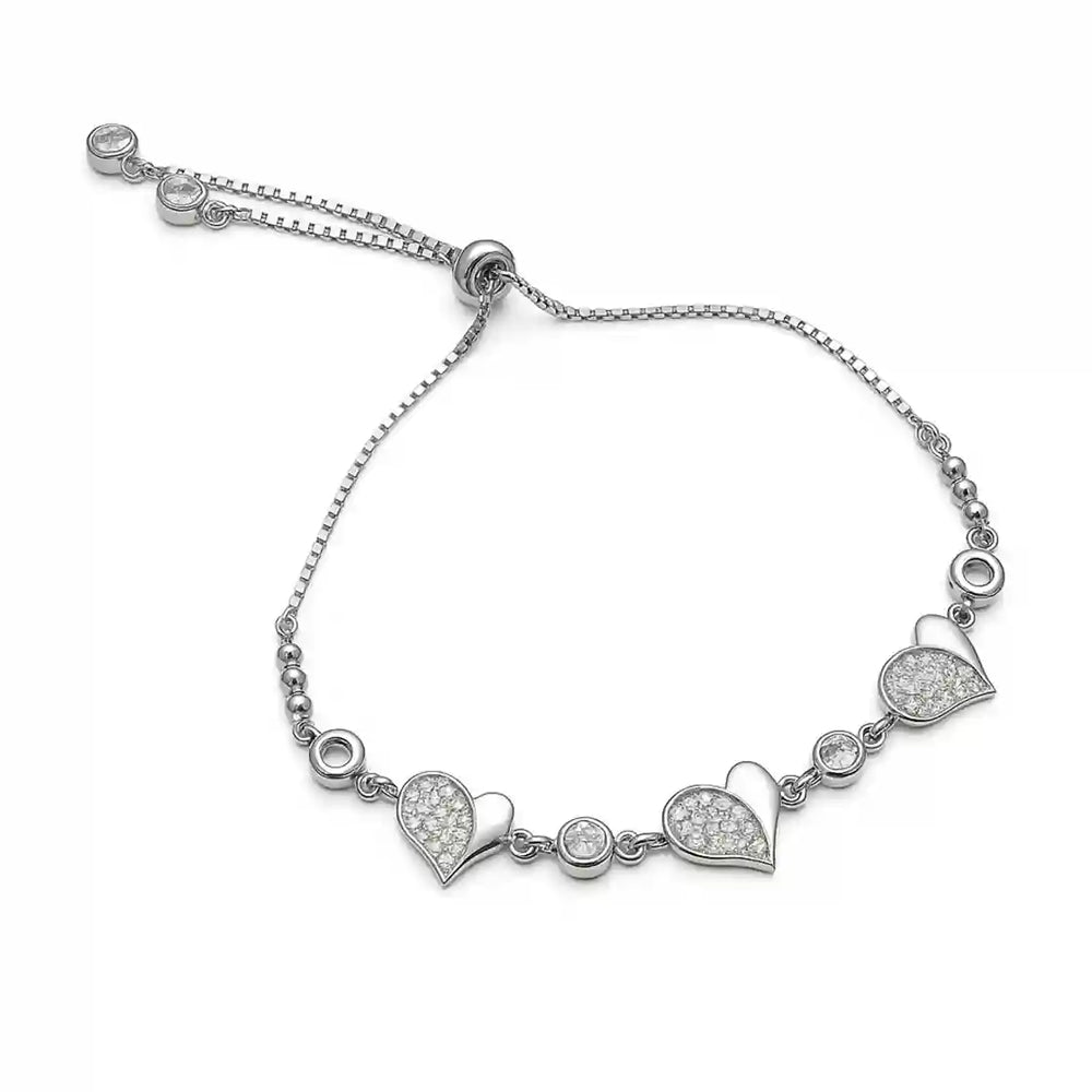Sterling Silver Heart CZ Adjustable Bracelet for Women