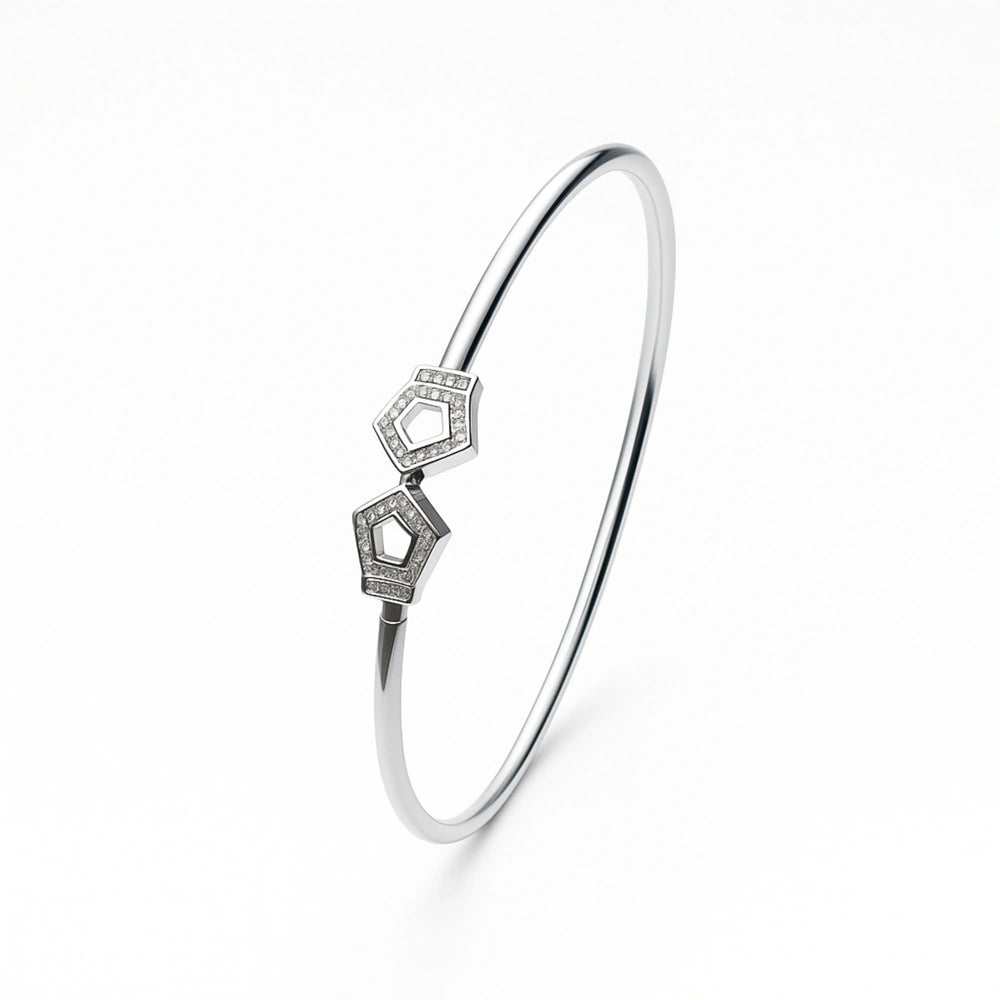 Sterling Silver Minimal Kada with Geometric Dual-Shape Design