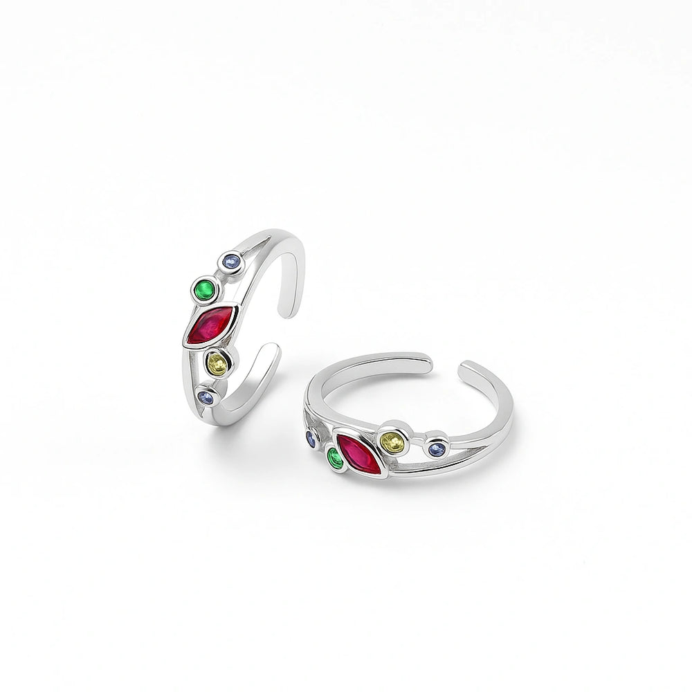 Sterling Silver Multi-Color Stone Adjustable Toe Rings