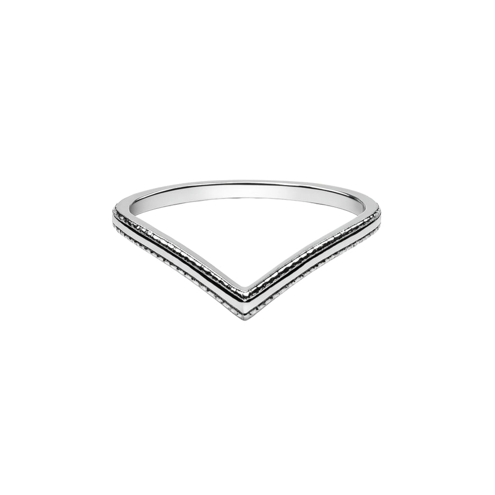 Textured Chevron V-Curve Silver Ring