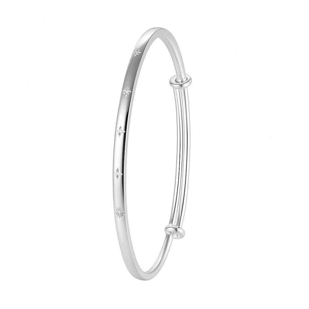 Women’s Engraved Silver Kada | Slim Adjustable Daily Wear Bangle