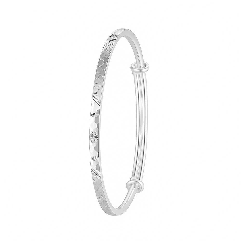 Women’s Textured Silver Kada | Slim Engraved Adjustable Bangle